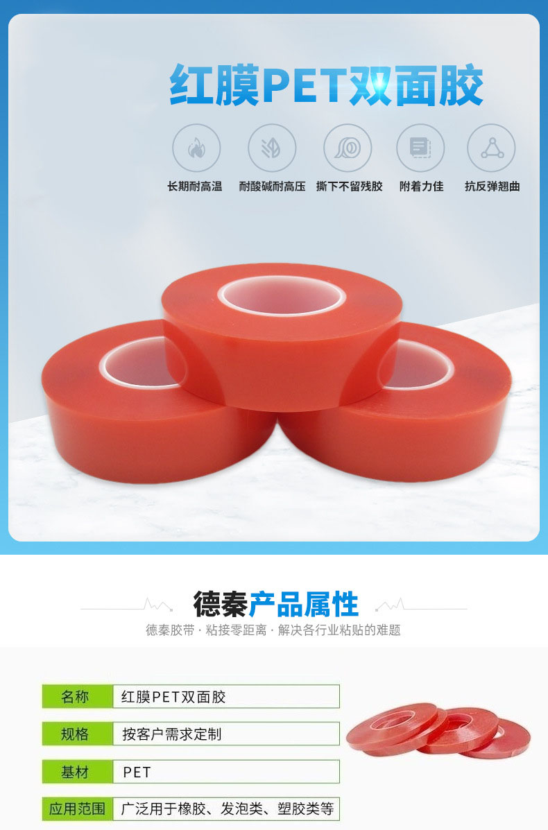 红膜pet双面胶带 高粘无痕纳米双面胶 手机电脑屏幕耐高温双面贴
