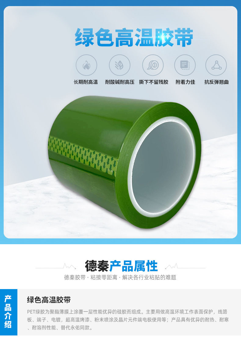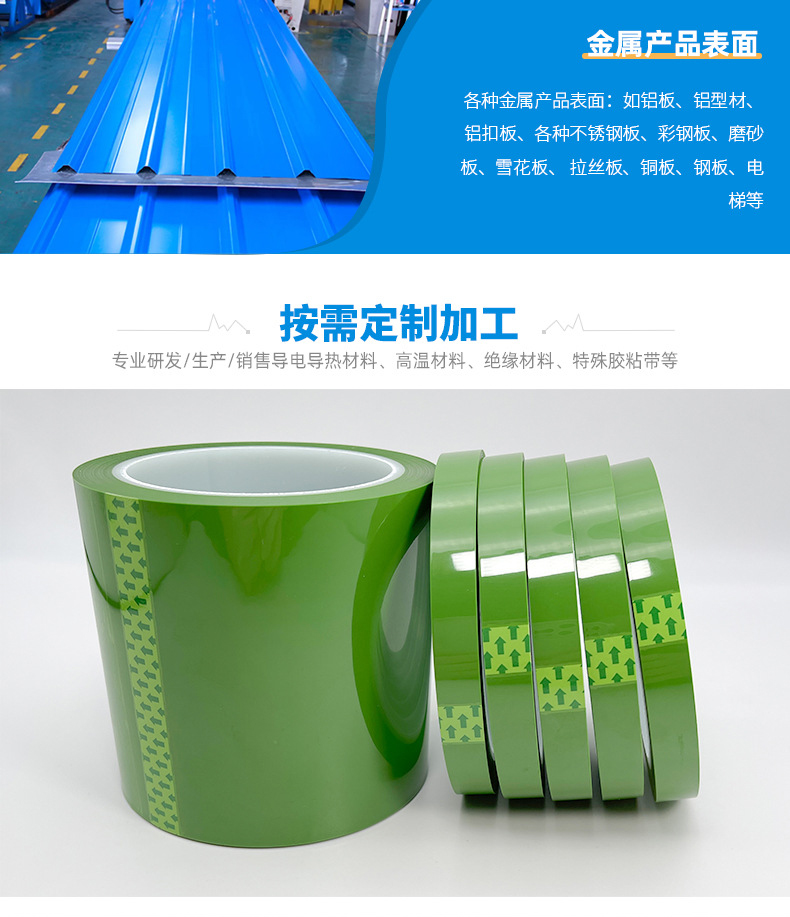 不残胶pet绿色高温胶带 线路板端子喷涂遮蔽无痕硅胶带高温绿胶